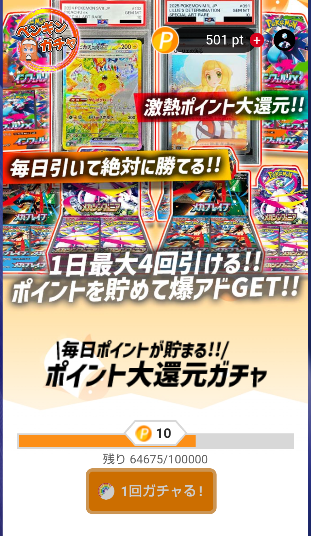 ポケカ、ワンピなどの高還元ガチャ多数。ネットオリパなら【ペンギンガチャ】